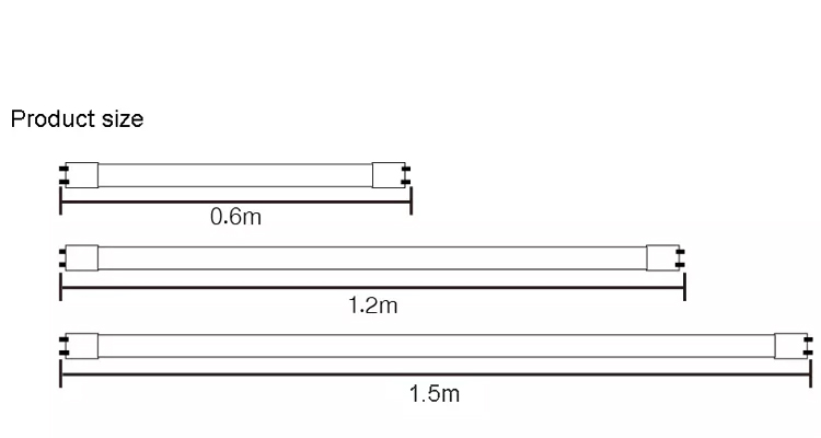 Lamp Size | 0.6m*∅26mm | 1.2m*∅26mm | 1.5m*∅26mm |
